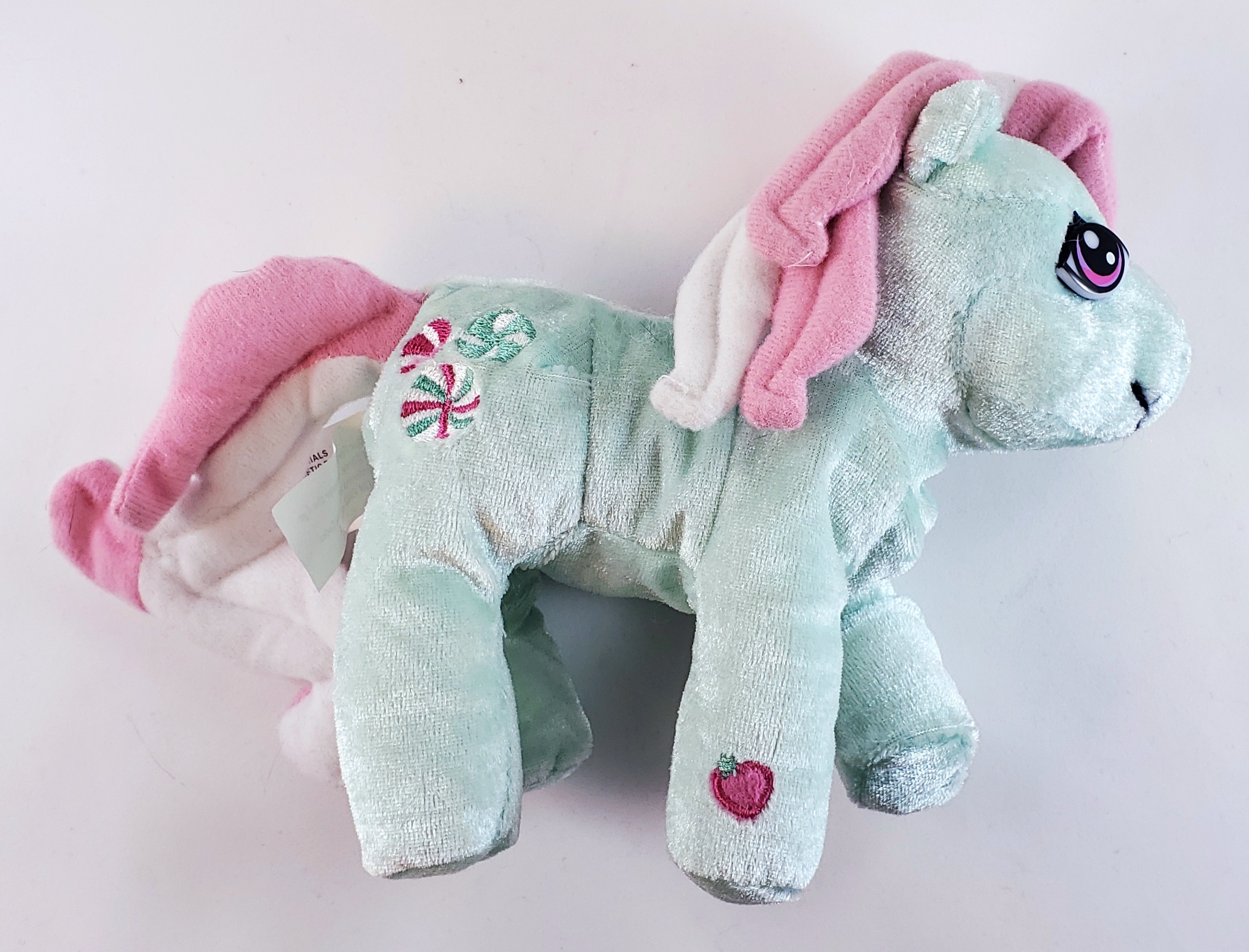 A 6-inch standing Nanco Minty plush with shimmery fabric, plastic eyes and molded hair. Her tags have a copyright date of 2006.