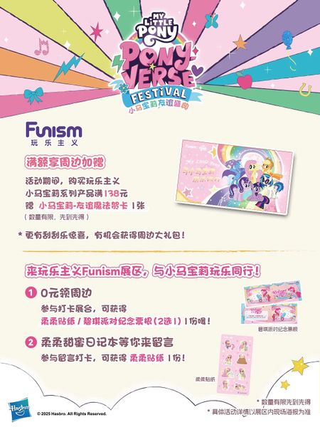 | current | 23:32, 20 July 2025 | 1,080 × 1,440 (183 KB) | NanoRuby (talk | contribs) | Promotional image from Xiaohongshu/RedNote for the Shanghai Ponyverse Festival pop-up event, with the details on Funism's exhibition offerings |