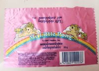 Finnish Ice cream wrapper featuring Magic Star, Twilight and Lickety-Split. The flavour of the ice cream is "Banana & Pear"