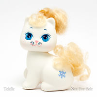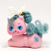 The Glitter 'N Grow set consisted of adult kitties and puppies whose hair would "grow" if pulled from either the tail or the large plastic bow(s) on the head. When the hair from the tail was pulled it would get longer and the hair from the bows would shorten and vise versa. They could be purchased individually or in a 2-pack with a bonus pet that was a re-release of a kitty from the 1st original set, but with shorter hair.