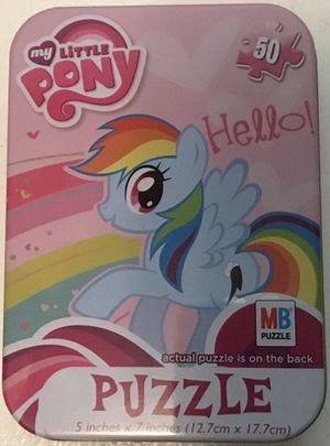 | − | + | [[File:G4HelloPuzzleTin.jpeg|thumb|50 pc Rainbow Dash jigsaw puzzle tin]] | |