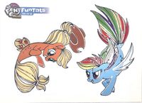 This set was the second side set after Equestrian Friends. It came with character and behind the scenes regular cards, foil cards, a puzzle, stickers, and FunTats.