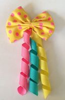 Purple hair bow tie with white dots and yellow, orange and hot pink curls, came with Great Hair Highlights