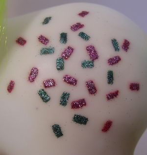 • Symbol: Glittery(?) pink and green confetti