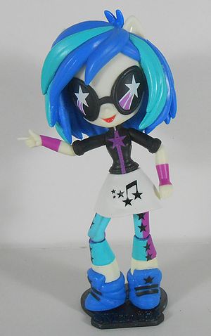 The human version of DJ Pon-3 is a student at Canterlot High. She appears as a background character in all the movies as well as providing assistance to the main characters in Rainbow Rocks. She is featured in the "Music to My Ears" music video short.