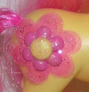 - Symbol: Pink flower with a yellow center and glitter over two layers of glitter covered flower-shaped fabric