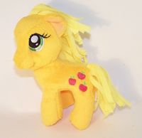 These plush came with holiday themed mugs and are about 7" tall. They only have their cutie mark on the left side, have yarn hair, and have "My Little Pony" stamped on the bottom of their front left hooves.