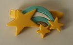Jewellery Sets consisted of a heart shaped box and 6 chunky multicoloured hair clips. There were several different colour schemes, and different pictures on the boxes, however they all contained the same clips (one clip each of each shape).