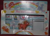 Year Three brought adorable new Baby Ponies. Worldwide distribution is debated. In the US and Canada, they are a set of six, simply called "Baby Ponies." In the UK, they are a set of only three, with one baby exclusive to the country. There, they are called the "Baby Pony Play and Care" set. The rest of Europe may have sold a combination of the two.