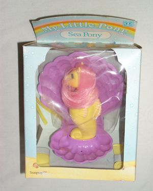 Seaspray is a G1 Sea Pony. She was the in the only set of sea ponies to be released in selected European countries (including the UK). She was accompanied by Wavebreaker and Surf Dancer.