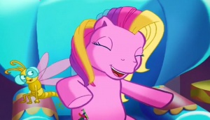 Storybelle a named protagonist from A Very Pony Place In which she narrated a story for Minty, Sunny Daze and Pinkie Pie. She was never made into a toy.