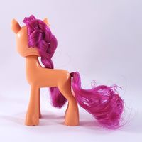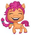 This 3-inch Sunny has brushable hair styled in a braid and comes with a blue comb. Sometime after the initial release, the card received an updated design. The second version is sometimes referred to as "Pony Friends" Sunny Starscout by online retailers, but the actual toy remains unchanged.