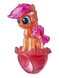 Epic Mini Crystal Brighthouse Sunny Starscout is a 1-inch tall Mini World Magic figure. She comes in a playset with Daring Flare, Maverick Mauve, Posey Bloom and Zipp Storm and many accessories. She has star-shaped eyeshines.