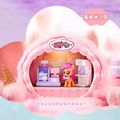 • Hair: Sparkly translucent pink, changes to a slightly darker pink in cold water