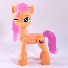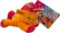 This poseable 8-inch alicorn Sunny with molded hair was an Asia-exclusive release by the Chinese company Dinosaw. She has glow-in-the-dark wings that flap when her legs are pressed together, and she sings when her Cutie Mark is pressed.