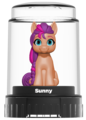 Friendship Shine Sunny is a 1.5-inch mini figure with no articulation. She reuses a G4.5 blind bag mold and was released as part of a Target-exclusive set along with 13 other figures.
